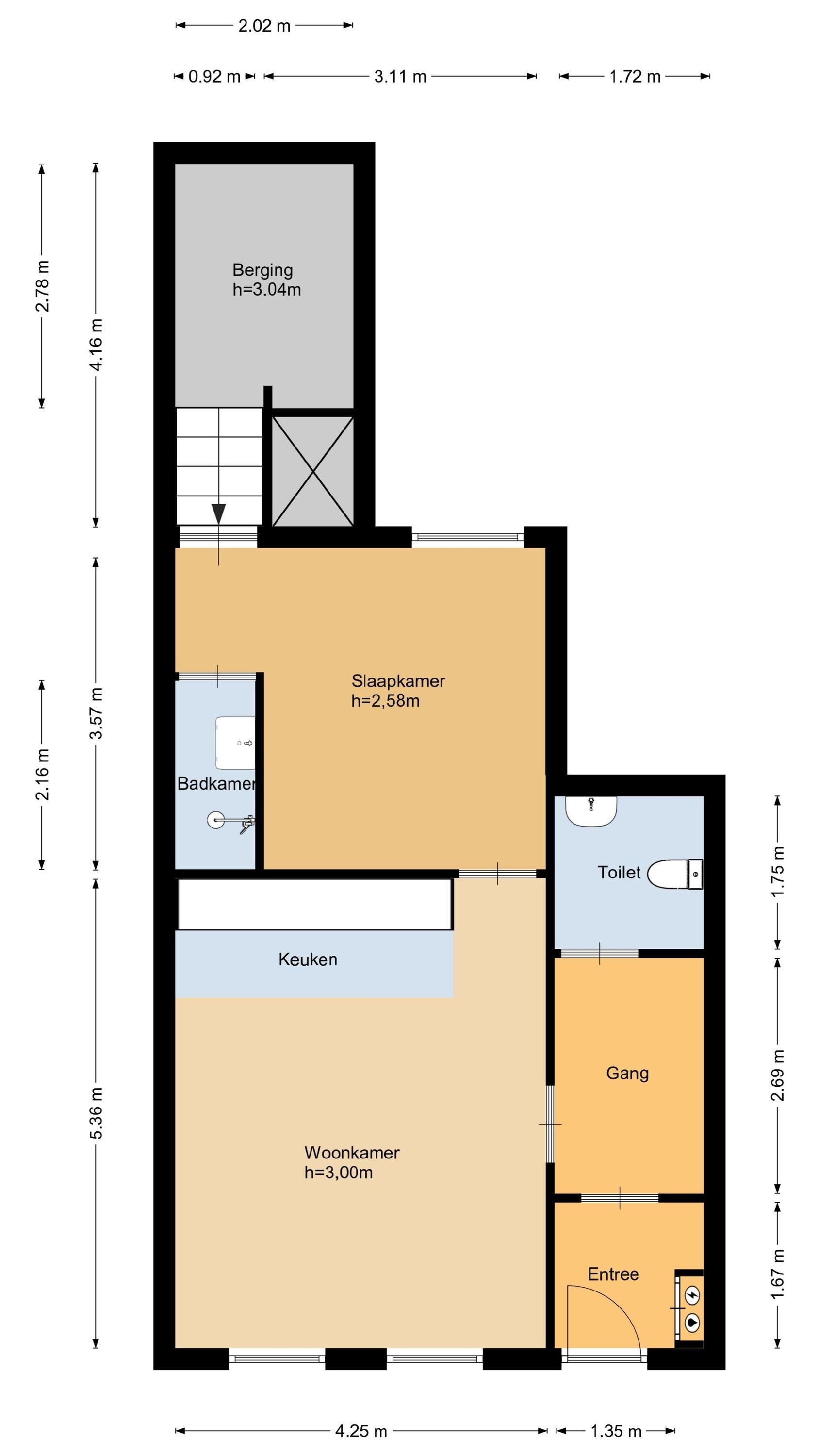 Dit woonhuis is ingemeten middels de NEN2580 en is voorzien van een gecertificeerd meetcertificaat. Meetinstructie is bedoeld om een meer eenduidige manier van meten toe te passen voor het geven van een indicatie van de gebruiksoppervlakte. De Meetinstructie sluit verschillen in meetuitkomsten niet volledig uit. Alle verstrekte informatie moet beschouwd worden als een uitnodiging tot het doen van een bod of om in onderhandeling te treden. Er kunnen geen rechten worden ontleend aan deze woninginformatie.