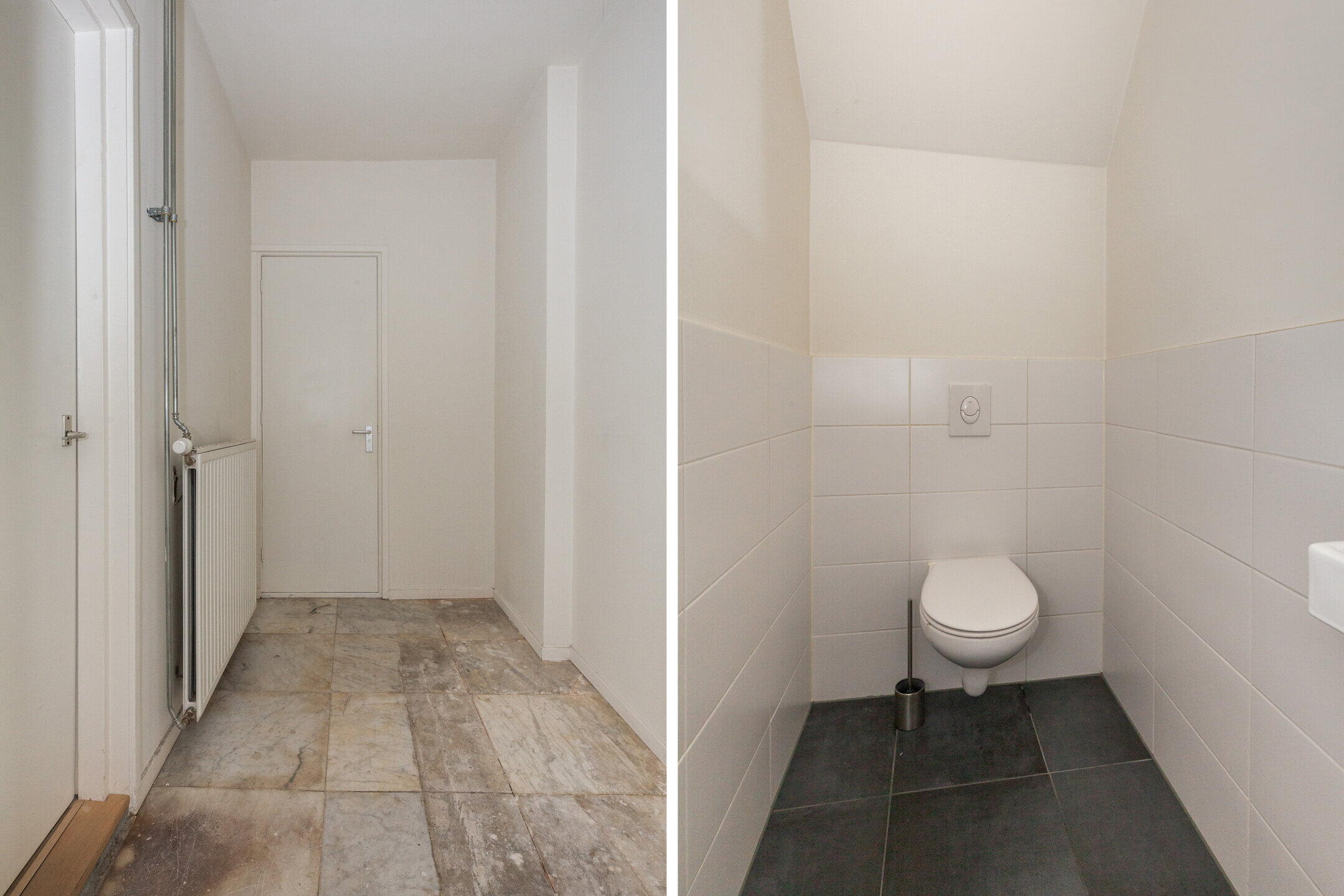 Via de fraaie voordeur is er via de gemeenschappelijke hal toegang tot het appartement. Via de gang welke afgewerkt is met fraaie marmeren tegels bereikt u de living. In de gang bevindt zich de ruime toiletruimte.